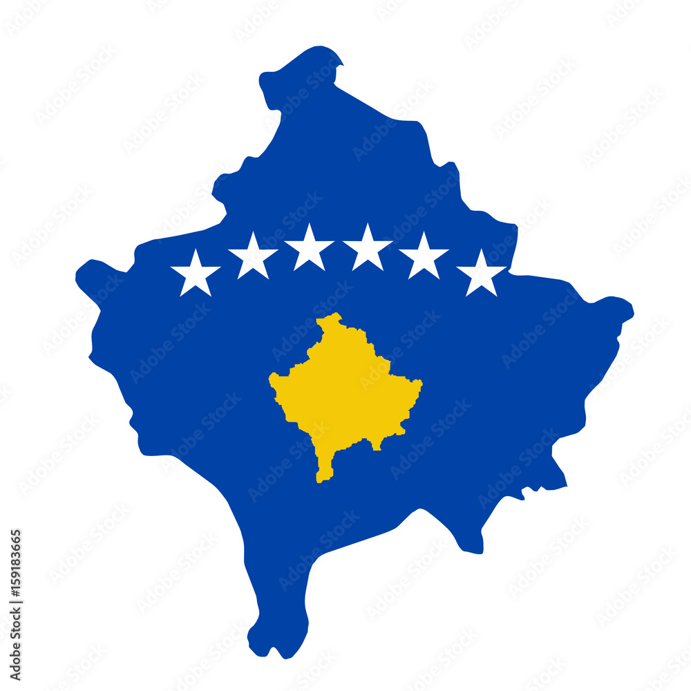 Kosovo flag map. Country outline with national flag Stock