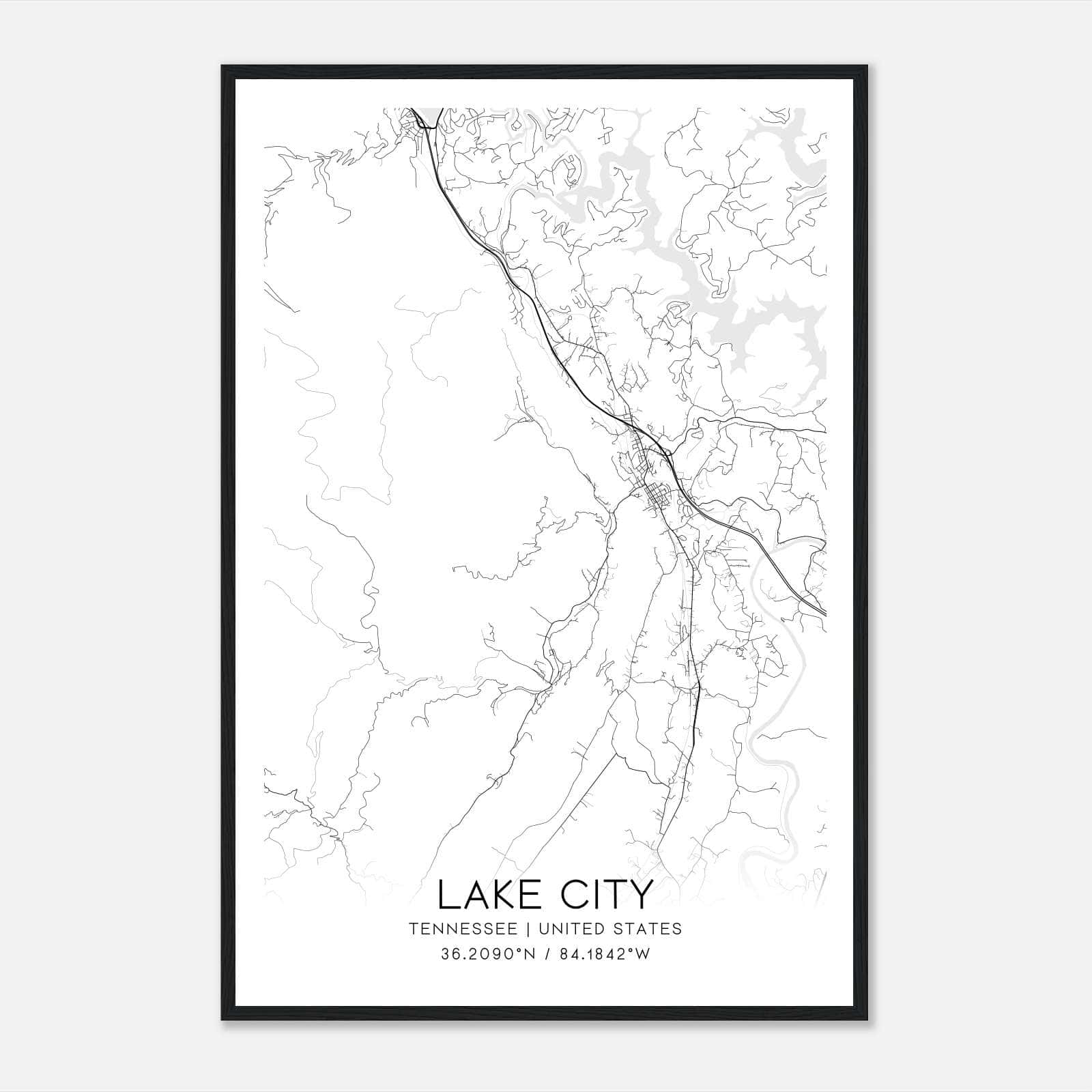 Lake City Tennessee Map Poster, Modern Home Decor Wall Art Print