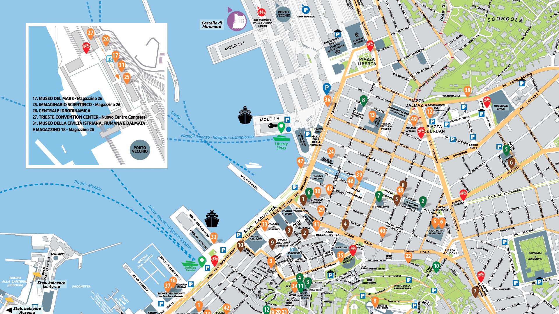 Trieste City Map Tourist map of Trieste city centre: Hop across the Adriatic sea from Venice and you’ll find Trieste, a unique border town that you’ve probably never heard of – but one you’re going to want to add to your city-break hit list. . In het station van het Italiaanse Triëst is zaterdag, aan de vooravond van het bezoek van de paus op 7 juli, een koffer met een wapen achtergelaten. Dat meldt de Italiaanse openbare omroep RAI. .