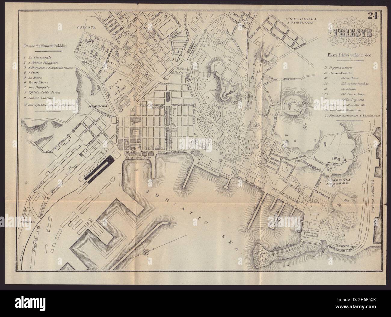 TRIESTE TRST antique town plan city map. Italy. BRADSHAW 1892 old