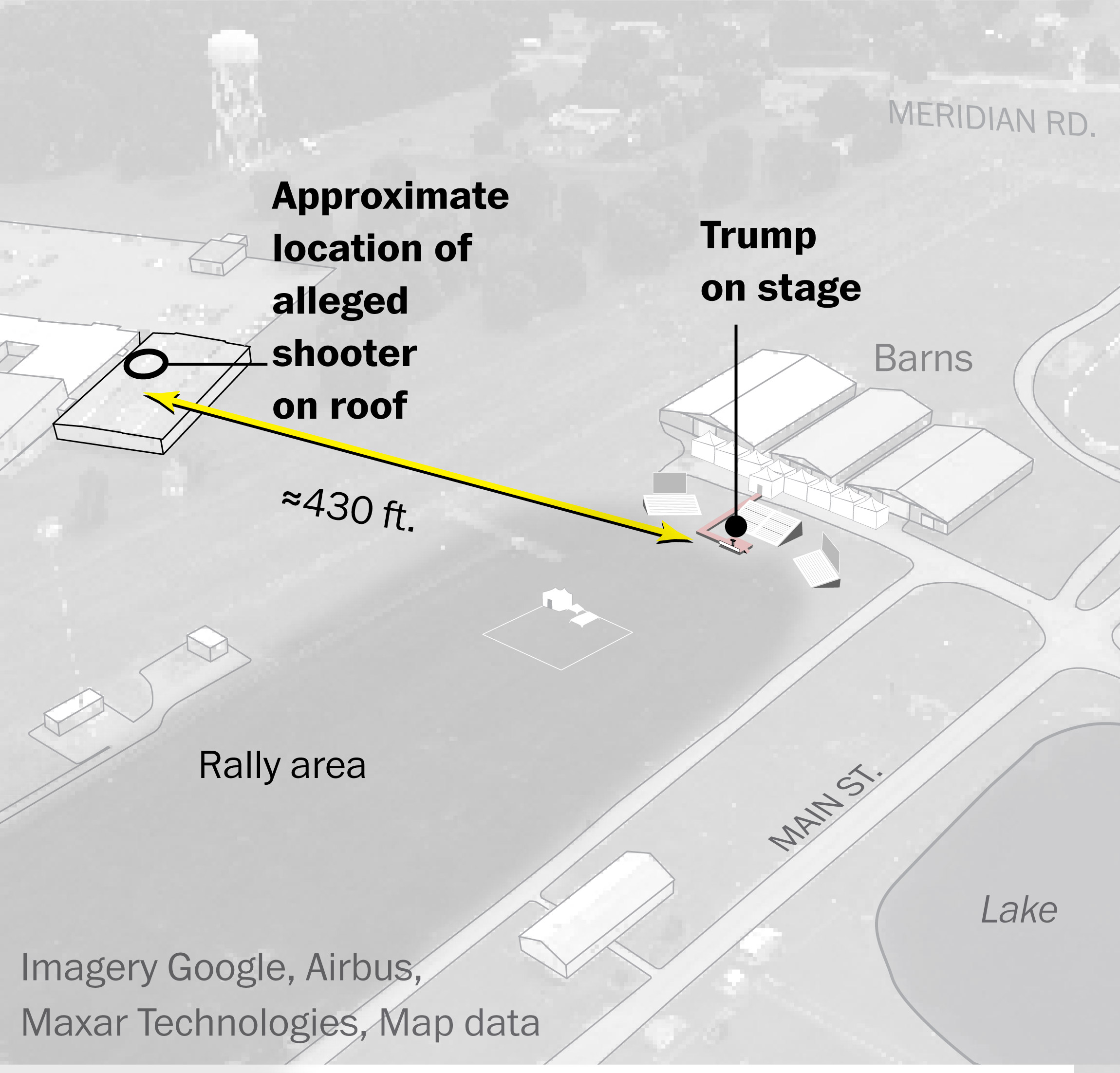 NBC News on X: “MAP: Suspected gunman’s location in relation to